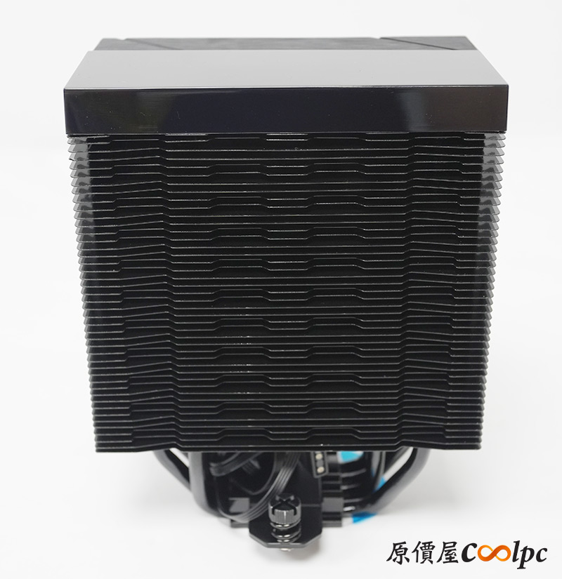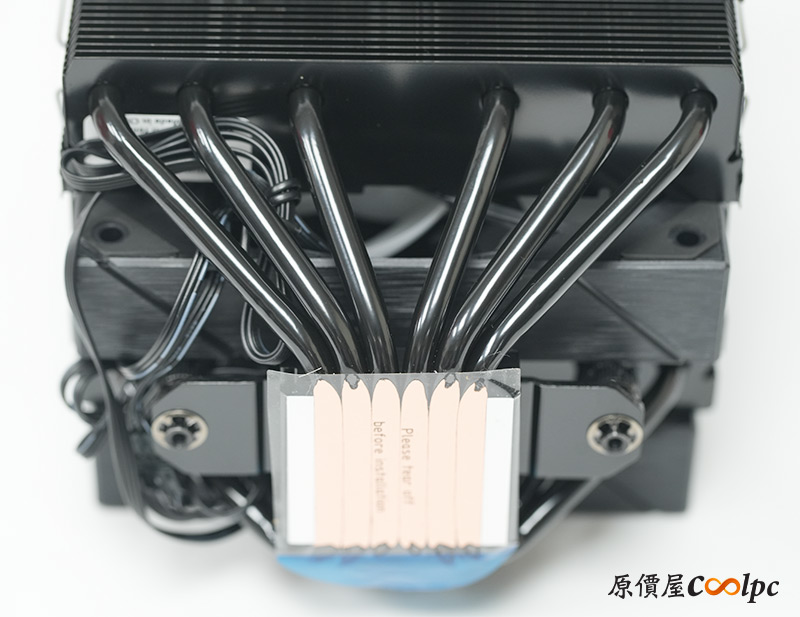 四根熱導管採直觸底座設計,可以加速將CPU熱能帶走,再進入鰭片並由風扇吹出。使用前會有一層透明膠膜必須撕除!