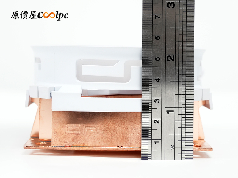散熱器本體的高度在 3 公分左右,就算裝上風扇總高度也控制在 5.5 公分以內。這個尺寸對於大多數的超小型機殼來說,基本上都沒有安裝壓力,不必擔心高度會與側板衝突,相容性表現相當不錯。