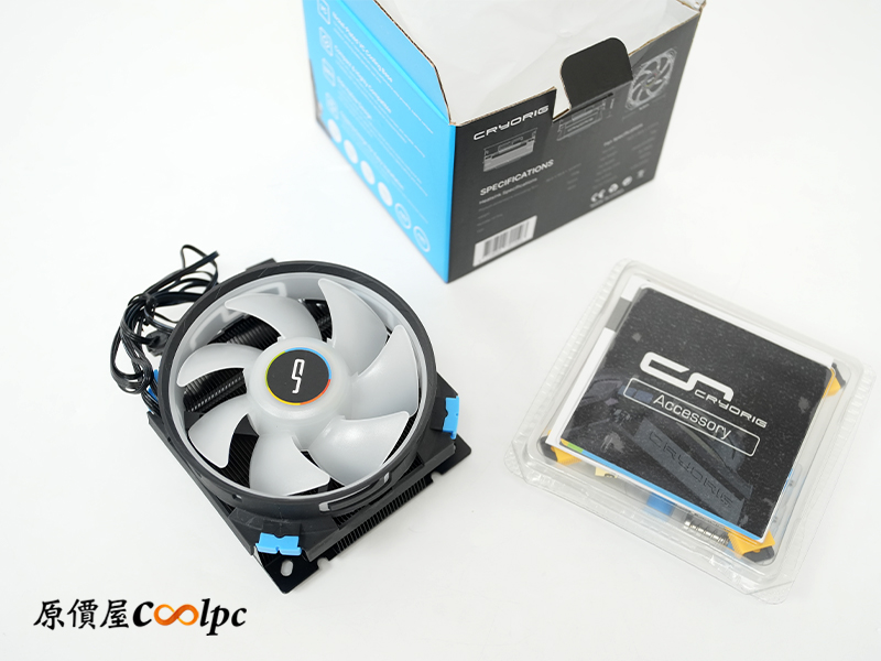 散熱器側面同樣保留了設計細節,可以看到 CRYORIG 全稱字樣以及品牌縮寫的 CR 標誌。