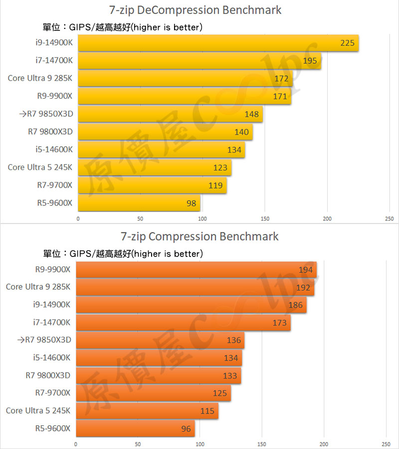 AMD Ryzen 7 9850X3D 跑分軟體測試:
