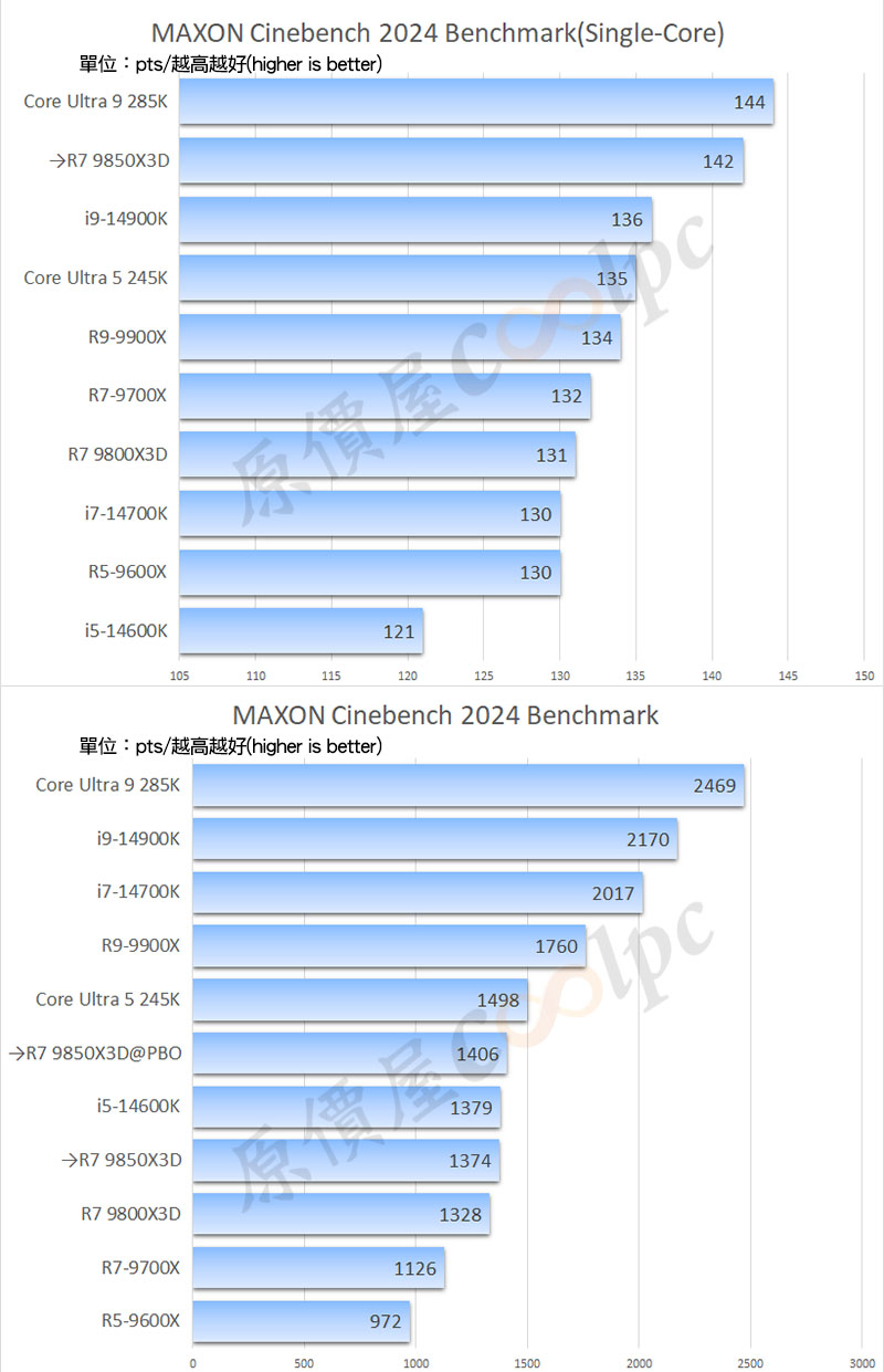 >>AMD Ryzen 7 9850X3D 跑分軟體測試