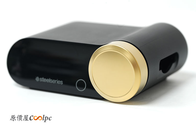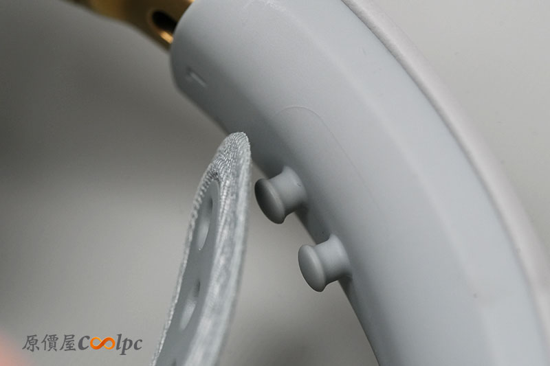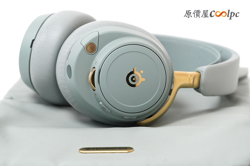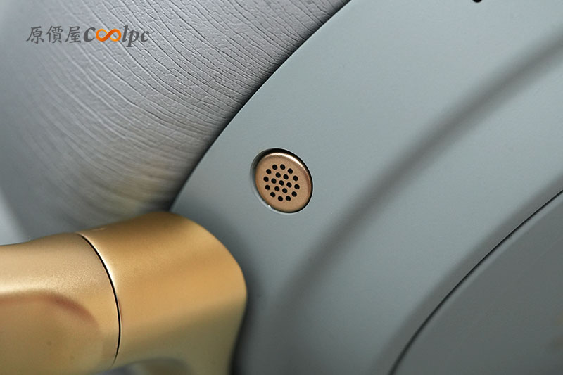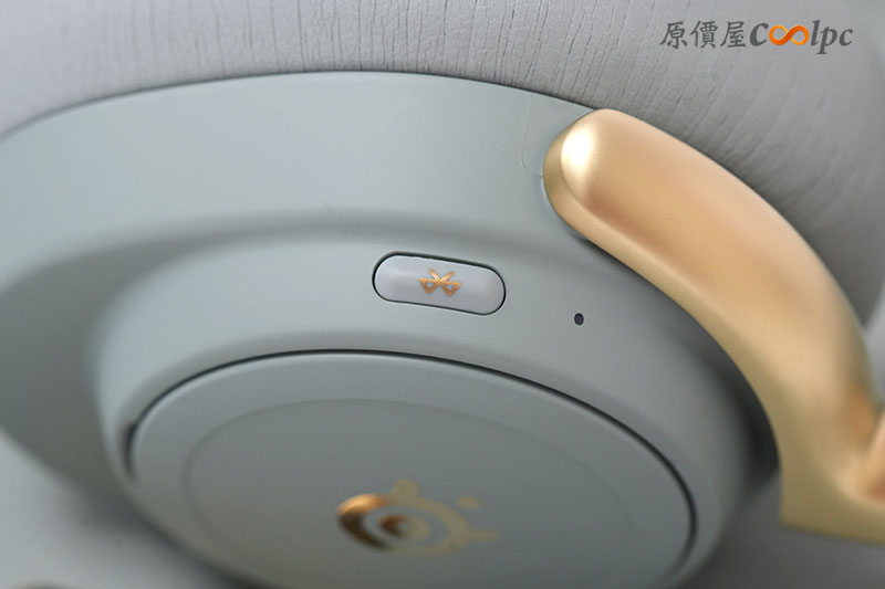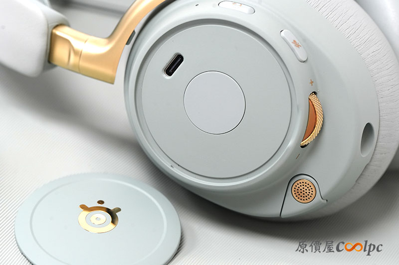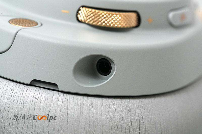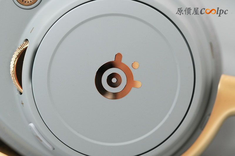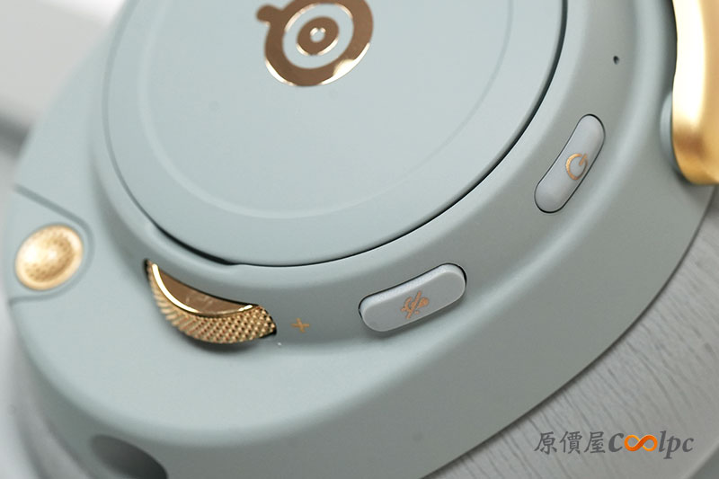耳機上也有分布多個按鈕與操作滾輪。包含電源開關、麥克風靜音/開啟、音量滾輪等。而且滾輪還是金色的耶~