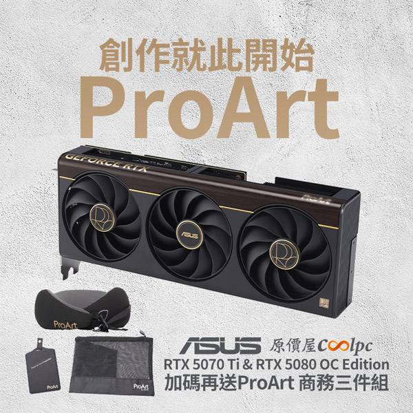 現在來原價屋購買華碩 ProArt RTX 5070Ti/ 5080 顯卡,加碼再送 ProArt 商務三件組(頸枕/證件套/網孔夾鏈袋),數量僅只有 20 組,數量有限,送完為止,有興趣的朋友可以利用網路下單,或到門市做詢問啦。