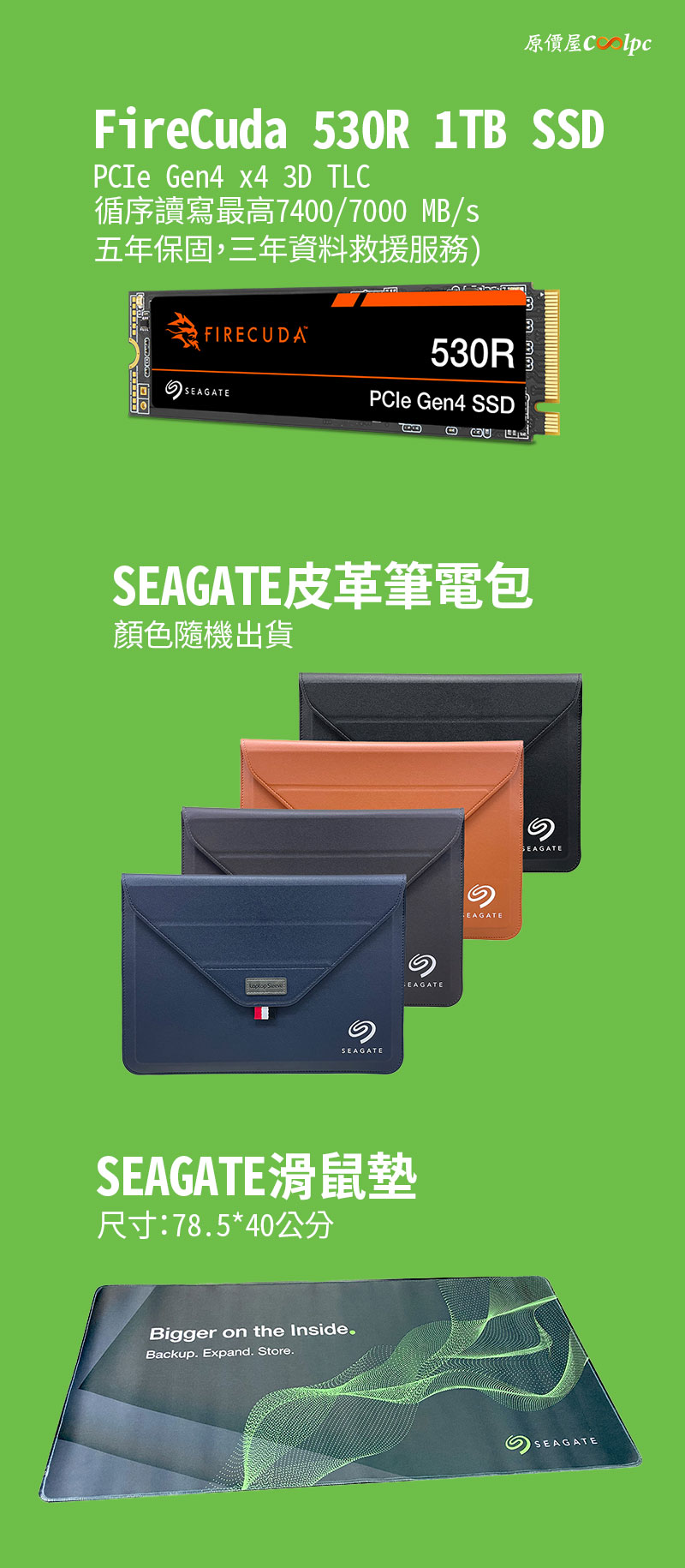 ↪送 Seagate FireCuda 530R 1TB M.2 SSD + SEAGATE 皮革筆電包(顏色隨機) + SEAGATE 滑鼠墊(尺寸:78.5*40公分),限量十組,數量有限,送完為止