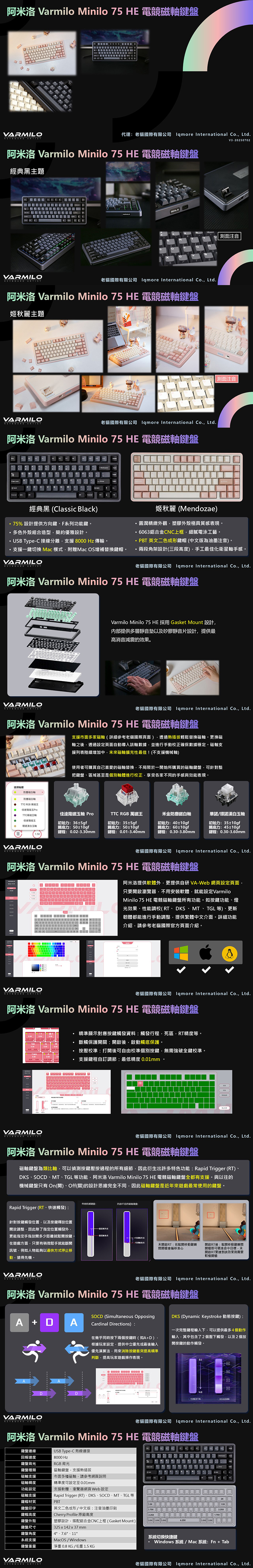 Varmilo Minilo75 HE 電競磁軸鍵盤(姬秋麗)/有線/8000Hz/環諾漢白玉軸/中文/熱插拔/Rgb/Mendozae, $3990