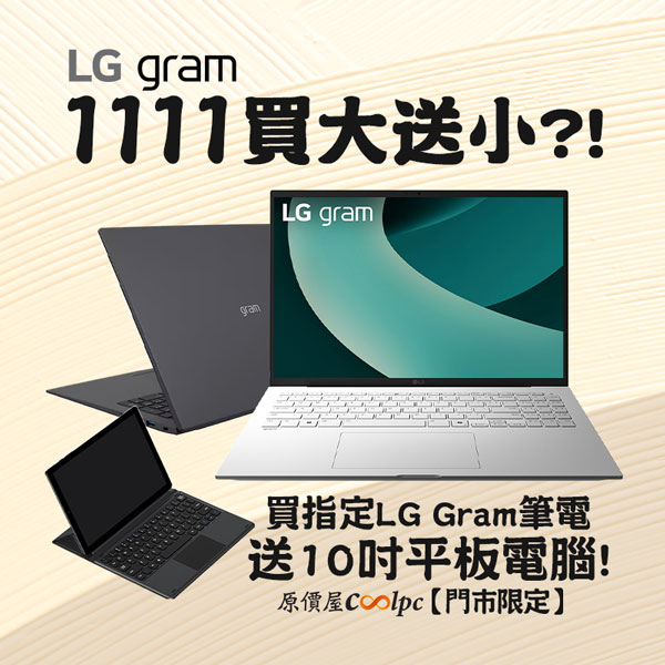 【門市限定】LG 1111買大送小?! 指定 LG Gram 筆電,限量送10吋平板電腦。
