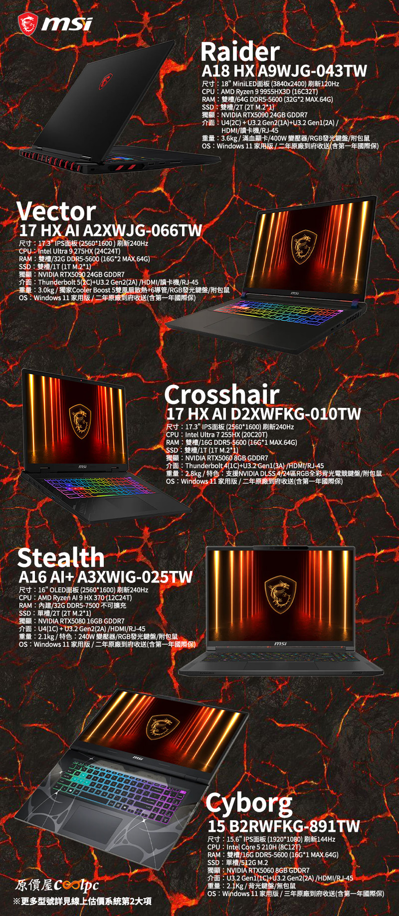 MSI Crosshair/Vector/Stealth/Raider/Titan 電競系列筆電