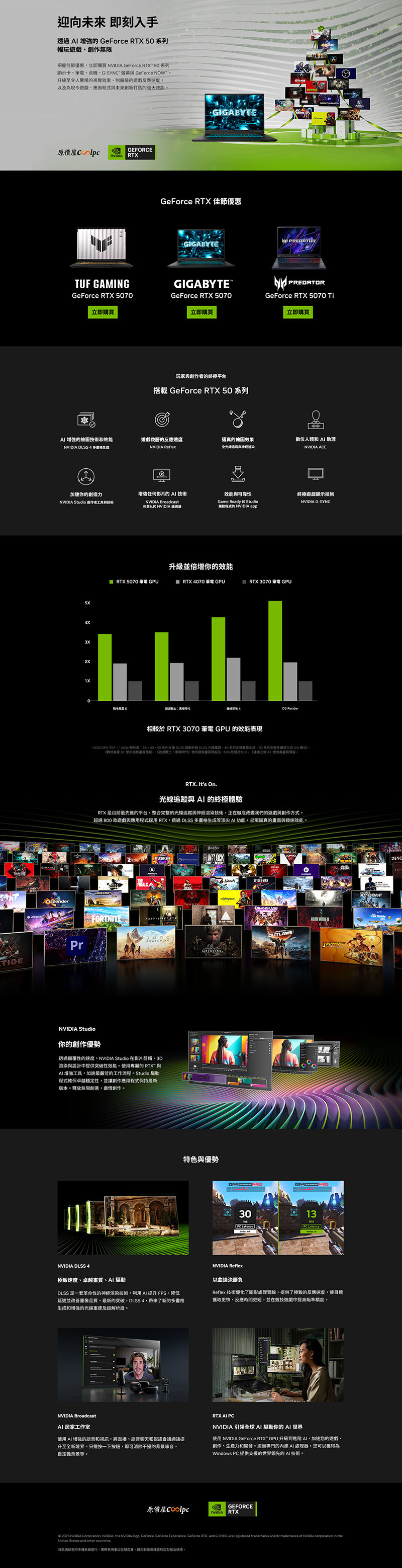 GPU:NVIDIA GeForce RTX 5070 8GB GDDR7 筆電 GPU