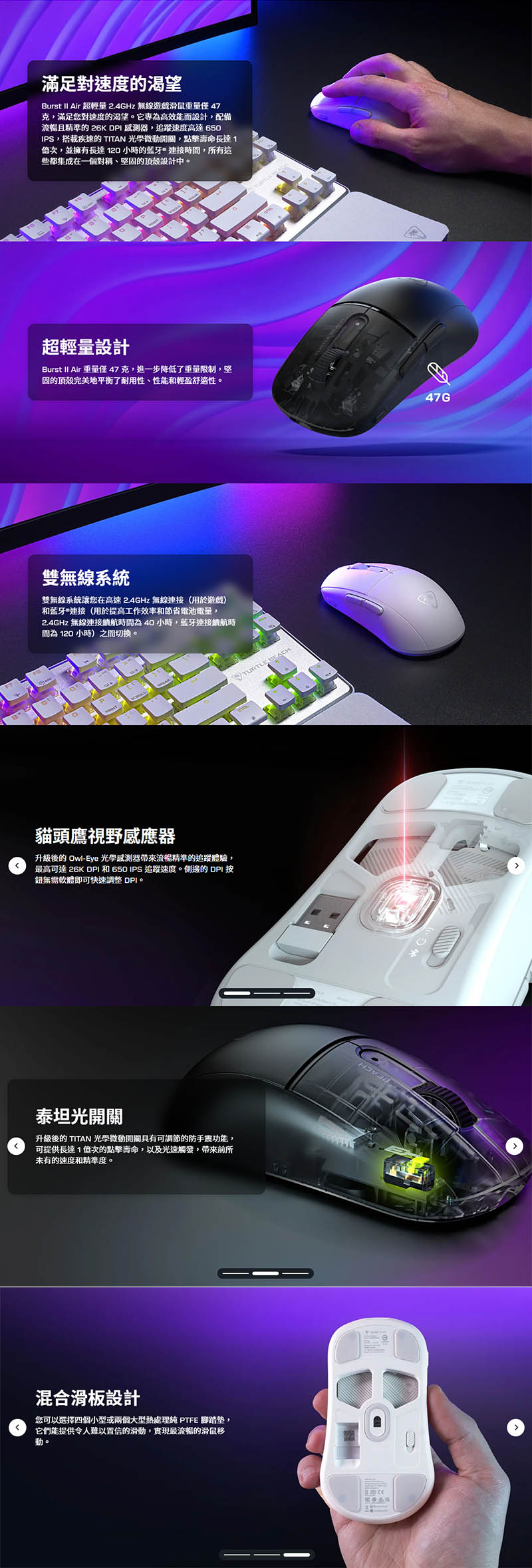 Turtle Beach Burst II Air 輕量化三模滑鼠(黑)/有線/無線/藍牙/26000Dpi/47g/TITAN光學軸, $1990