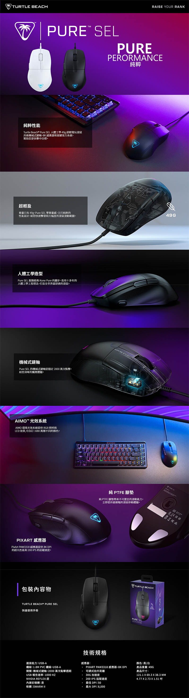 Turtle Beach PURE SEL(黑)電競滑鼠/有線/PAW3318/8000Dpi/49克/Rgb, $890↘$790