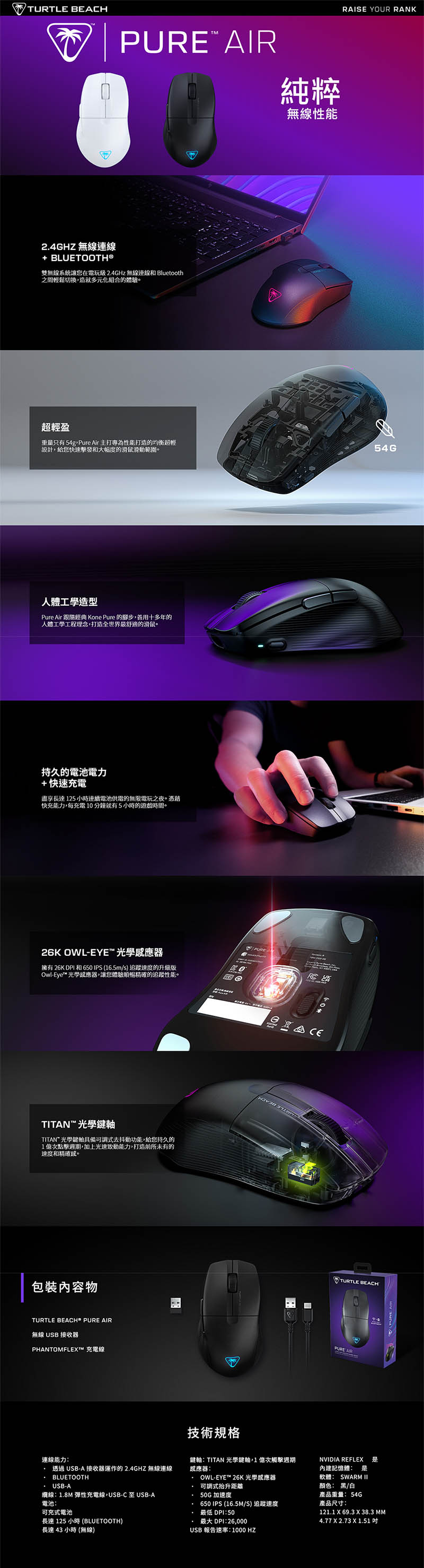 Turtle Beach PURE AIR(黑)無線滑鼠/2.4g/藍牙/26000Dpi/TITAN光學開關/Rgb, $1990↘$1790