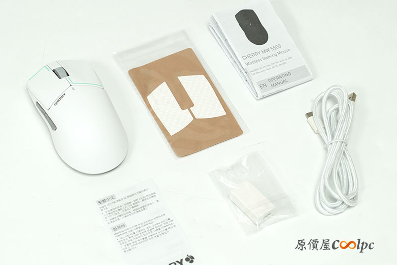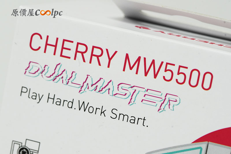 外盒為白底紅字的設計,簡潔有力地標示「Cherry MW5500」產品型號,右側也可看到滑鼠的外觀剪影。也可以發現此款滑鼠共推出三色,不過我們今天會以黑、白兩個經典色款為主。