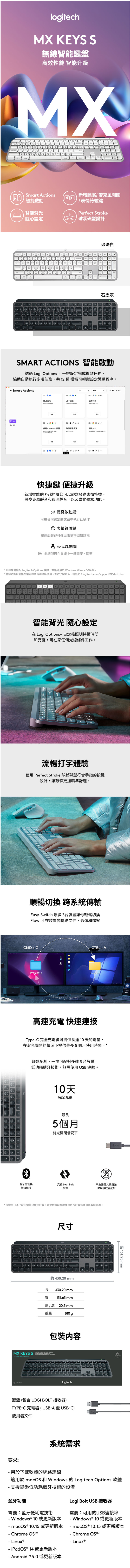 .羅技 MX Keys S 無線智能鍵盤(珍珠白)(920-011597) $3990↘$3390