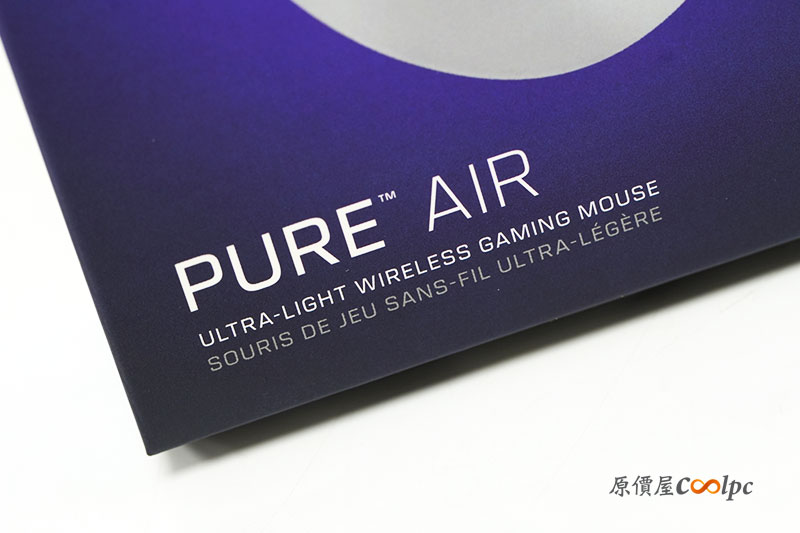 「PURE AIR」本體採用偏對稱式的外型設計。線條流暢,適合多種握法,特別選白色款來開箱,也是想要呈現它外觀的清爽感,而且他的白色還是微半透明的設計,讓桌面顏值大大加分!