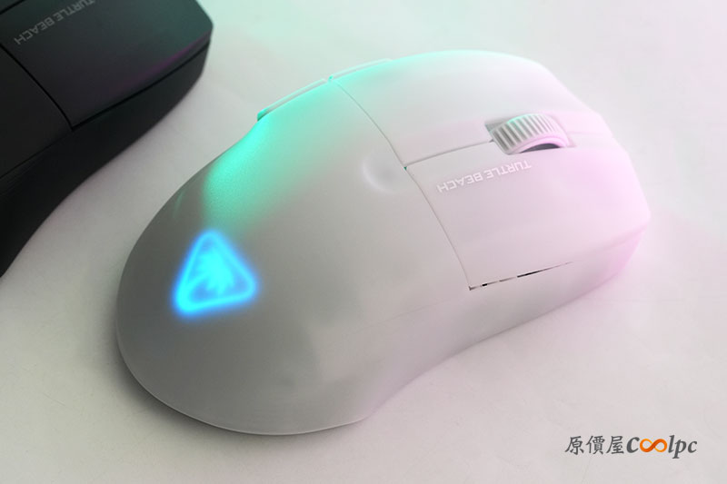 過電後鼠身上的 RGB 燈罩也開始透光,特別的是造型為 Turtle Beach 的 LOGO。