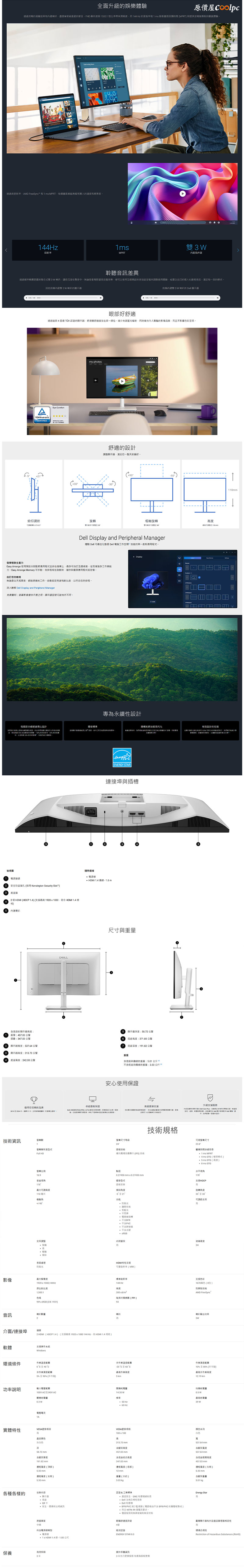 DELL S2725DC〈QHD/1H1P1C/IPS/144Hz/含喇叭/無亮點/四年保〉可升降旋轉, $10888 ↘$9988 蝦皮商城下單