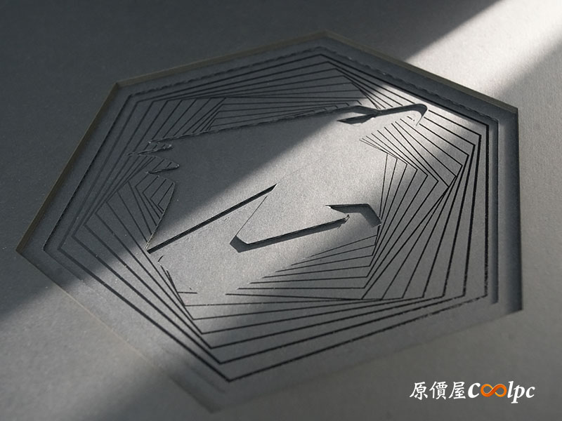 開箱後,映入眼簾的是透過精密切割的 AORUS 鷹神圖騰,小編拍照時是白天,攝影棚剛好有道陽光射下來,恰好展現出旗艦級 AI TOP 系列獨特的高質感。