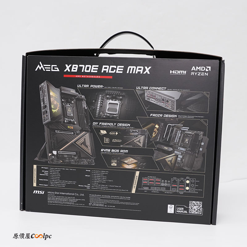 微星 MEG X870E ACE MAX 主機板完美詮釋旗艦級別的無妥協設計,從豪華的 18+2+1 相供電陣容到極致的 Frozr 散熱裝甲,確保了 Ryzen 9000 頂級處理器無論是在重度遊戲還是高負載的專業創作下,都能釋放非凡的效能潛力。主機板在堆料展現極大誠意,10G + 5G 雙網路埠與全速 Wi-Fi 7 的豪華連線配置,加上五組 M.2 插槽與雙 USB4,幾乎把未來的擴充需求一次給到位。搭配全新的 EZ DIY 系統真的讓人愛不釋手,不管是顯卡快拆、還是無螺絲的磁吸 M.2 安裝設計,徹底解決以往裝機的各種卡手問題,主機板售價$19,990元含稅報價,有興趣的朋友可以利用網路下單,或到門市做詢問,或利用蝦皮商城下單。