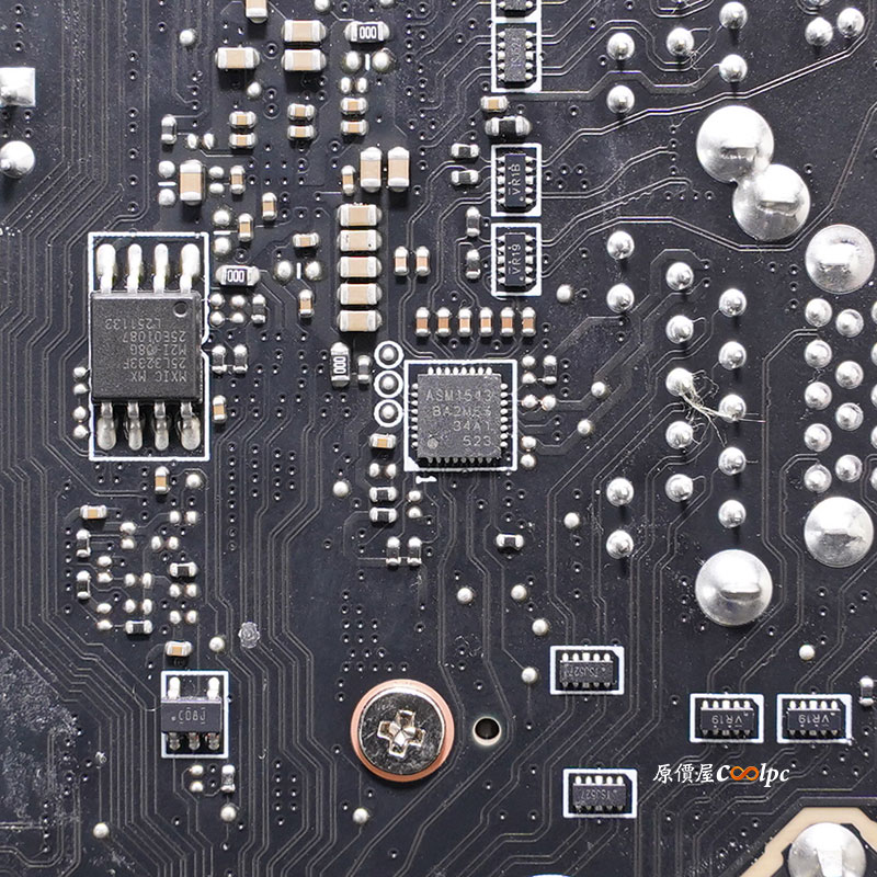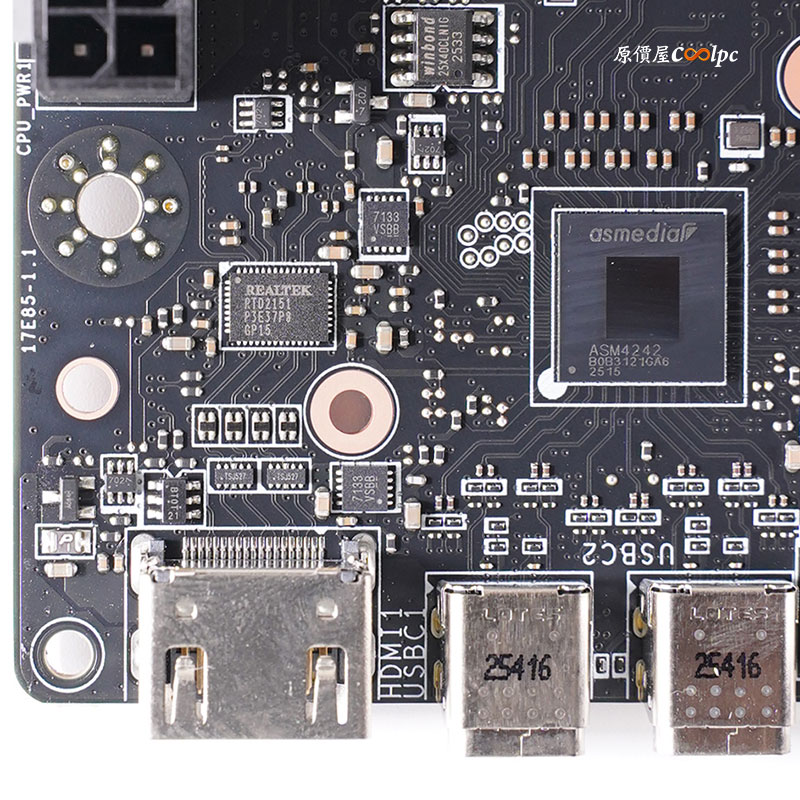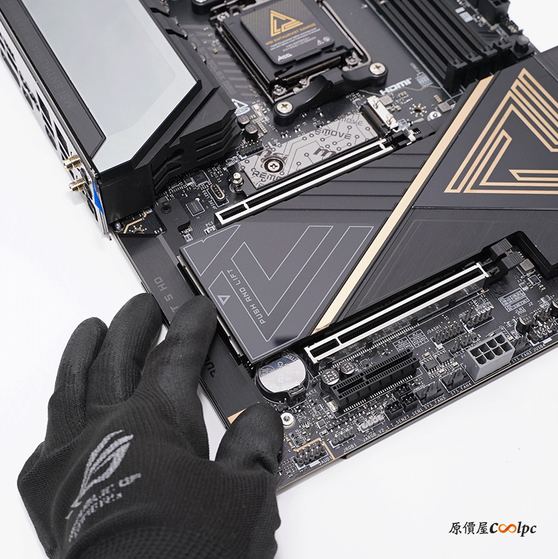 背面的部分有多一塊強化結構裝甲,同時也可以幫忙供電模組散熱,下半部也有一個 M.2 SSD 插孔。