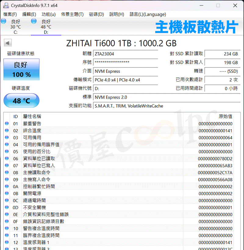 S.M.A.R.T. 數值詳解:提供最完整的 S.M.A.R.T. 監測數據清單,讓專業玩家能深入分析硬碟的各項讀寫壽命指標,防患於未然。