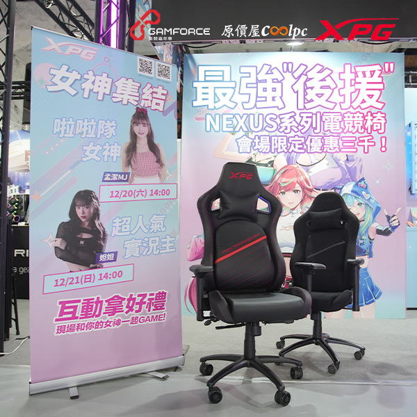 【2025 GAMFORCE 展場限定】女神應援!GAMFORCE最強「後援」登板!XPG指定電競椅限量優惠三千。
