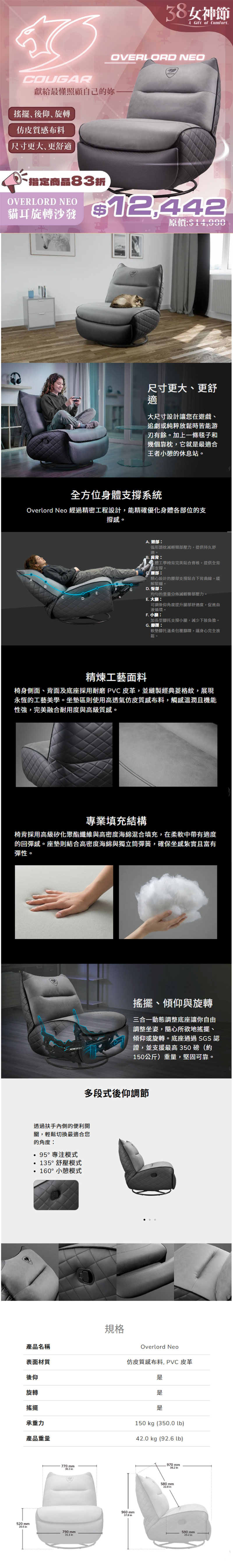 .Cougar Overlord Neo 電競沙發 $14990↘$12442