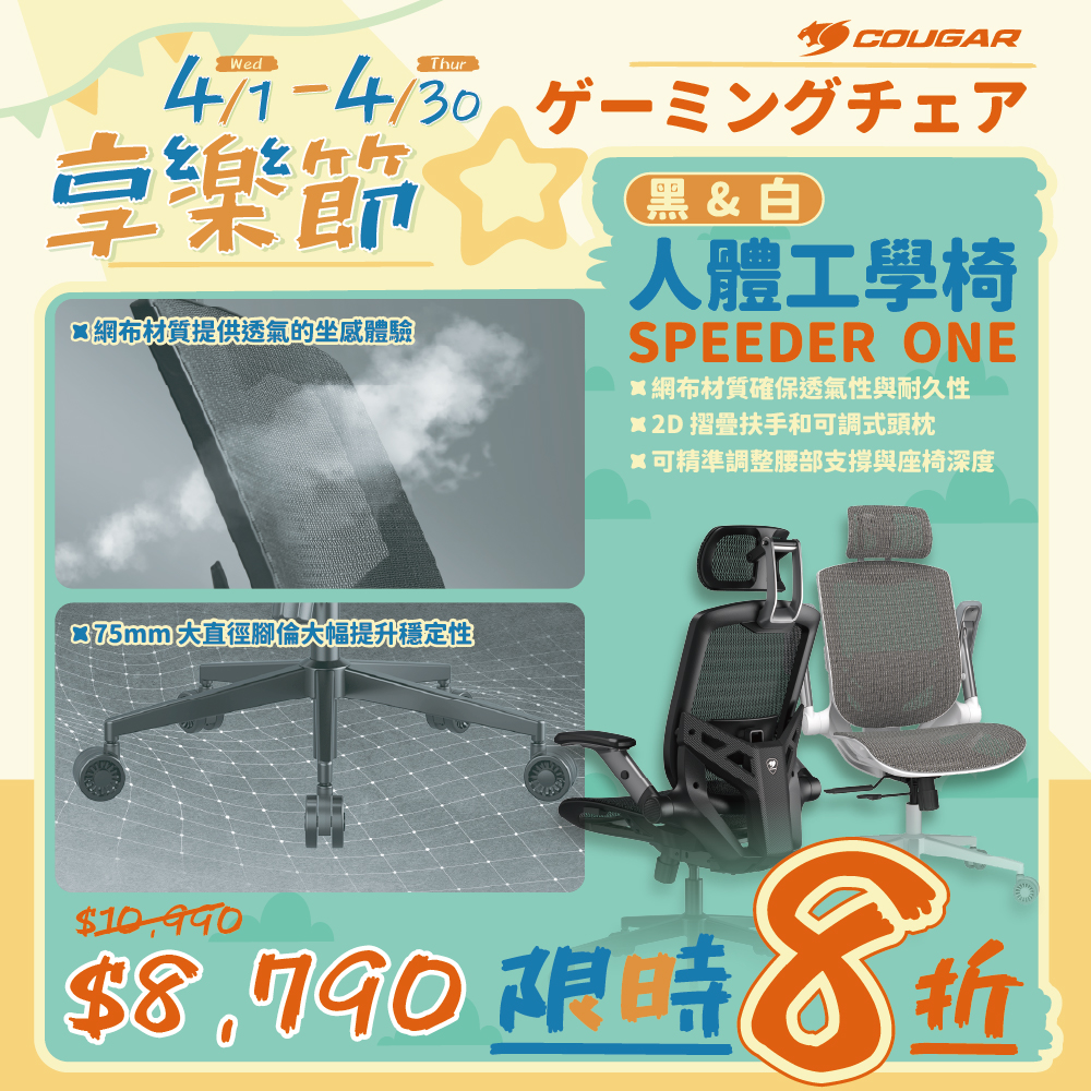 COUGAR SPEEDER ONE 人體工學電競椅(黑色) $10990↘$8790 蝦皮