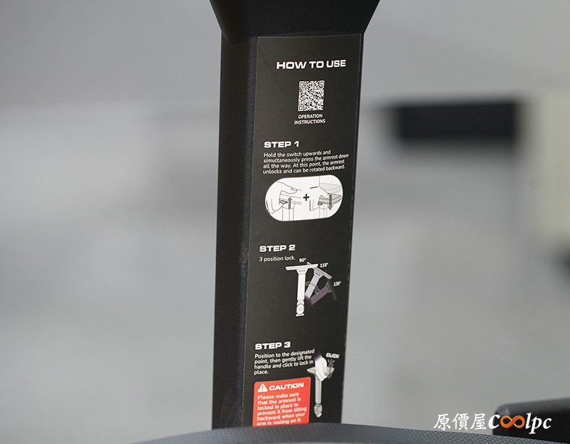 要摺疊扶手可以看扶手內側的教學,按住按鈕後將整個扶手向下壓,接著就能讓扶手往後倒了。