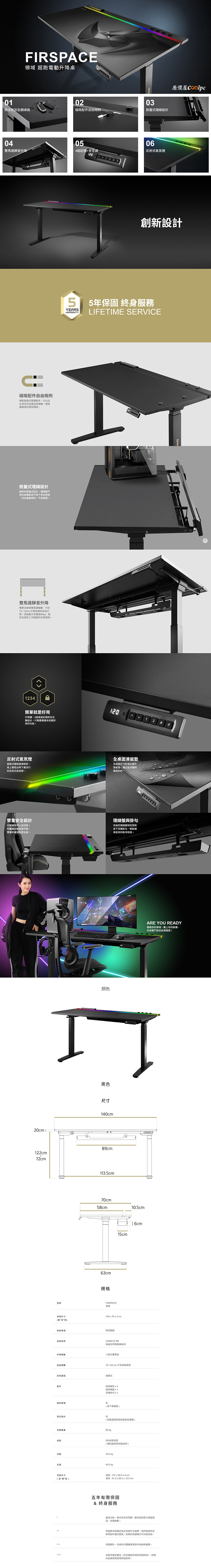 【活動商品】:Marsrhino Firspace (領域)電競桌-電動升降/全鋼桌板/雙靜音馬達/140×70/耐重80kg/Rgb, $14500