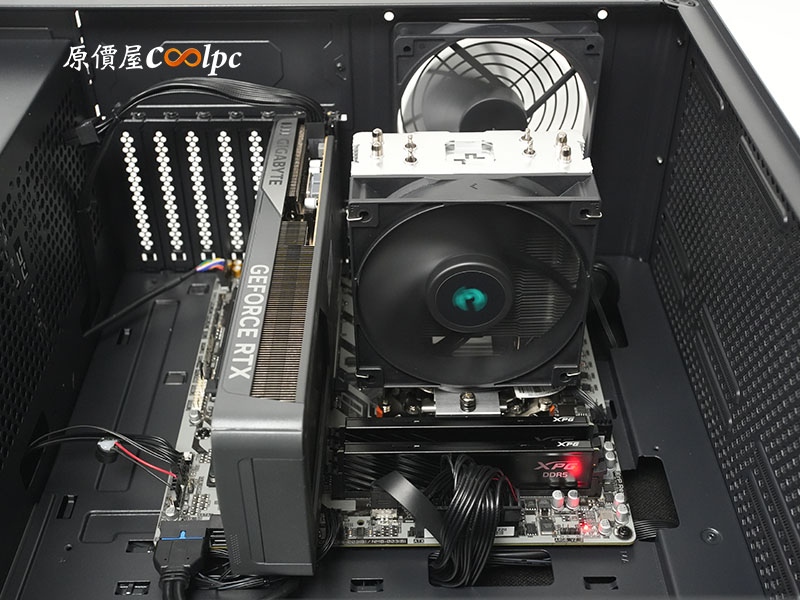 * 九州風神 AG400 散熱器: 4 根直觸式 6mm 純銅熱導管,獨特的矩陣式鰭片設計不僅外觀俐落,更大幅提升散熱面積。搭配 PWM 調速風扇,在靜音與散熱間取得完美平衡。